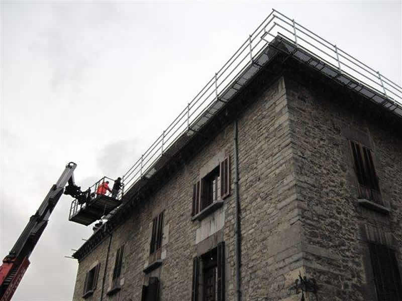 Fácil de instalar, permite trabajar en condiciones de seguridad a la hora de rehabilitar fachadas y cubiertas, instalando los guardacuerpos, barandillas...
